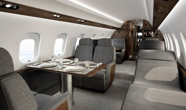 Przestronna kabina Global 6500 jest podzielona na 3 odrębne strefy, optymalizując ruch i prywatność każdego pasażera. Najbardziej zaawansowana technologicznie kabina ożywa w samolocie Global 6500 dzięki zapierającej dech w piersiach rozrywce 4K. W kabinie Global 6500 znajduje się w pełni wyposażona kuchnia z nowymi blatami, piekarnikiem parowym i innymi wysokiej klasy urządzeniami. Fotel Nuage to wyjątkowy system siedzeń, który wyróżnia się stylem i komfortem. Fotel podąża za krzywizną ciała jak szezlong i przekształca się w powierzchnię do spania lub siedzenia dodatkowych osób przy stole konferencyjnym.